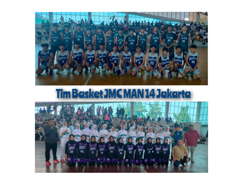 62 03 Oct 2025Jakarta (Humas MAN 14 Jakarta) – Peserta didik Madrasah Aliyah Negeri 14 Jakarta Timur yang tergabung dalam tim basket berhasil lolos ke babak perempat final pada Jakarta Madrasah Competition (JMC) Tahun 2025 di Gelanggang Olahraga (GOR) MAN 4 Jakarta Selatan pada Sabtu (27/9/2025).Tim basket MAN