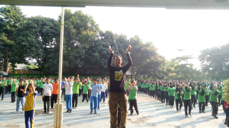 Jakarta. Warga sekolah yang mengikuti acara senam pagi terlihat sangat