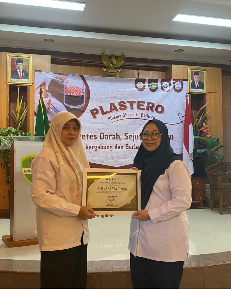 Jakarta (Humas MAN 14 Jakarta) – Kegiatan bertajuk PLASTERO yaitu Plasma Share To Be Hero dilaksanakan di aula Madrasah Aliyah Negeri 14 Jakarta Kampus A pada tanggal 29 Juli 2024. Kegiatan donor darah bertema “Setetes darah, Berjuta Harapan” ini merupakan kerjasama antara Palang Merah Indonesia (PMI), Organisasi Siswa Intra Sekolah (Osis) dan ekstrakurikuler Palang Merah Remaja (PMR) dan diikuti oleh guru, siswa dan masyarakat sekitar.