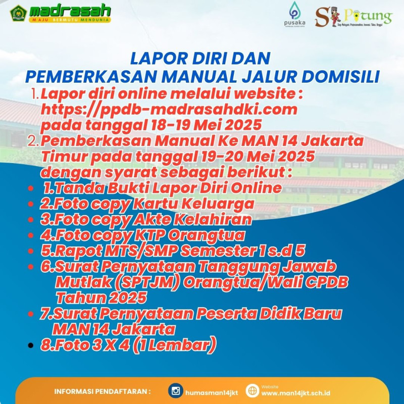 LAPOR DIRI DAN PEMBERKASAN MANUAL JALUR DOMISILI MAN 14 JAKARTA TIMUR