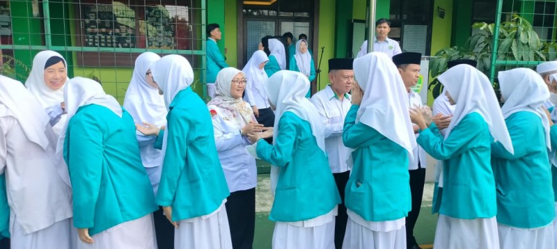 bersalaman antara siswa dengan para guru dan tenaga kependidikan, serta siswa