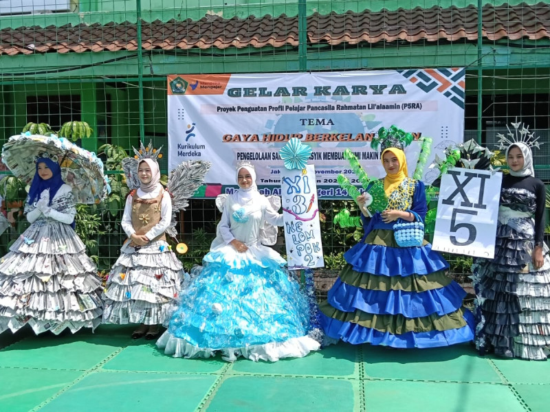 528 29 Nov 2024Jakarta (Humas MAN 14 Jakarta) – Gaya Hidup Berkelanjutan merupakan tema P5RA kedua di tahun pelajaran 2024 – 2025 Madrasah Aliyah Negeri 14 Jakarta. Gelar karya atau pameran P5RA (Projek Penguatan Profil Pelajar Pancasila Rahmatan Lil Alamin) dengan tema Pengeloaan Sampah yang Asyik Membuat